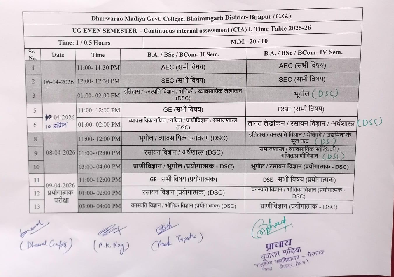 संशोधित July- Dec. 2025 Semester Exam Time Table