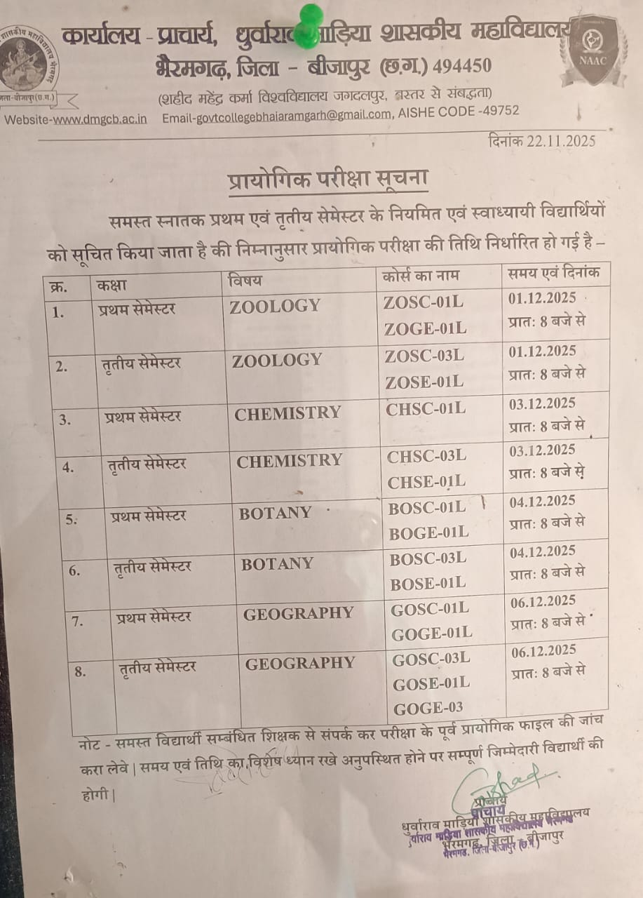 प्रायोगिक परीक्षा सूचना (विज्ञान संकाय)
